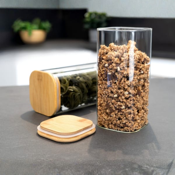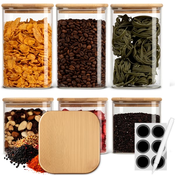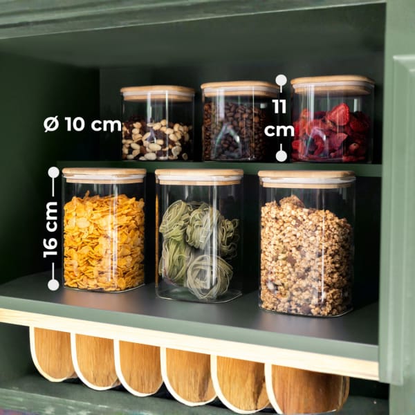 Zestaw 6 szklanych pojemników kuchennych Classbach C-VD 4030Classbach C-VD 4030 to funkcjonalny zestaw sześciu pojemników kuchennych w dwóch praktycznych rozmiarach, który pozwala stworzyć uporządkowaną i estetyczną przestrzeń w kuchni. Kwadratowa forma oraz połączenie szkła z naturalnymi pokrywami z bambusa nadają całości nowoczesny i minimalistyczny charakter.Zestaw obejmuje 3 pojemniki o pojemności 600 ml oraz 3 pojemniki 1000 ml, co pozwala łatwo dopasować pojemność do różnych produktów – od przypraw i bakalii po makaron, ryż czy płatki śniadaniowe.Pojemniki wykonane są z wysokiej jakości szkła, które jest higieniczne, bezpieczne dla żywności i neutralne dla smaku. Transparentna konstrukcja umożliwia szybkie sprawdzenie zawartości bez otwierania pojemnika.Kwadratowy kształt pozwala lepiej wykorzystać przestrzeń w szafkach i na półkach. Pojemniki można ustawić bliżej siebie, co znacząco zwiększa efektywność przechowywania i pomaga utrzymać porządek.Pokrywy z naturalnego bambusa wyposażone w silikonową uszczelkę zapewniają szczelne zamknięcie, chroniąc produkty przed wilgocią oraz utratą świeżości. W zestawie znajdują się również naklejki i marker, które umożliwiają wygodne oznaczenie zawartości.Najważniejsze funkcje Classbach C-VD 4030:Zestaw 6 pojemników (3 × 600 ml, 3 × 1000 ml)Kwadratowa, oszczędzająca miejsce konstrukcjaWysokiej jakości szkłoPokrywy z naturalnego bambusaSilikonowa uszczelkaSzczelne przechowywanieTransparentna konstrukcjaMożliwość opisywania pojemników (naklejki + marker)Różne pojemności – elastyczne zastosowanieDo produktów sypkich i spożywczychMożliwość mycia w zmywarce (pojemniki)Przechowywanie bez użycia plastikuDlaczego warto kupić zestaw pojemników Classbach C-VD 4030?Maksymalne wykorzystanie przestrzeniKwadratowy kształt pozwala ustawić pojemniki bliżej siebie i lepiej zagospodarować miejsce w kuchni.Elastyczność zastosowaniaDwa rozmiary pojemników umożliwiają przechowywanie różnych produktów w jednym, spójnym zestawie.Świeżość produktówSzczelne zamknięcie chroni zawartość przed wilgocią i utratą aromatu.Łatwa organizacjaTransparentne ścianki oraz możliwość podpisania pojemników ułatwiają szybkie odnalezienie produktów.Wymiary (ok. szer. x wys. x gł.)Pojemniki: 100 × 110 × 100 mm oraz 100 × 160 × 100 mmOpakowanie: 365 × 337 × 135 mm...