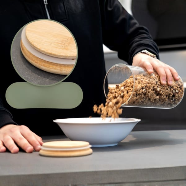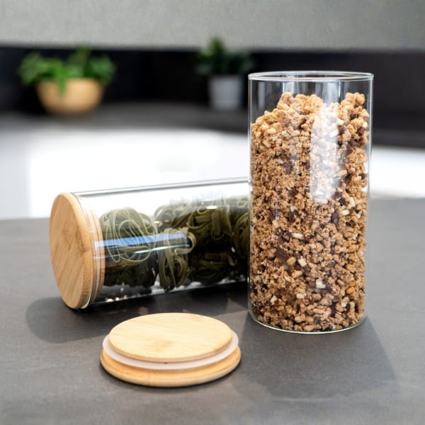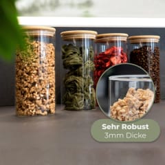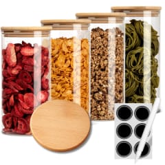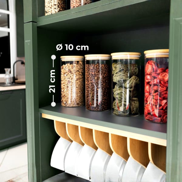 Zestaw 4 szklanych pojemników kuchennych Classbach C-VD 4026Classbach C-VD 4026 to elegancki zestaw czterech pojemników kuchennych o pojemności 1,5 litra każdy, który pozwala wprowadzić ład, porządek i spójny wygląd w Twojej kuchni. Transparentne szkło w połączeniu z naturalnymi pokrywami z bambusa tworzy minimalistyczny, estetyczny zestaw idealny do nowoczesnych wnętrz.Pojemniki wykonane są z wysokiej jakości szkła, które jest higieniczne, bezpieczne dla żywności i neutralne dla smaku. Dzięki temu doskonale nadają się do przechowywania produktów sypkich, takich jak makaron, ryż, mąka, płatki śniadaniowe czy kawa.Szczelne pokrywy z bambusa wyposażone w silikonową uszczelkę chronią zawartość przed wilgocią i utratą świeżości. To praktyczne rozwiązanie, które pomaga zachować aromat i jakość przechowywanych produktów na dłużej.Transparentna konstrukcja pozwala szybko sprawdzić zawartość bez otwierania pojemnika, a ich jednolity kształt ułatwia estetyczne ustawienie w szafkach, na półkach lub blacie kuchennym. W zestawie znajdują się również naklejki i marker, które umożliwiają opisanie zawartości.Pojemniki sprawdzą się nie tylko w kuchni – mogą być również wykorzystane do przechowywania drobiazgów w łazience lub spiżarni, tworząc spójną i uporządkowaną przestrzeń.Najważniejsze funkcje Classbach C-VD 4026:Zestaw 4 pojemników (4 × 1500 ml)Wysokiej jakości szkłoPokrywa z naturalnego bambusaSilikonowa uszczelkaSzczelne przechowywanieTransparentna konstrukcjaMożliwość opisywania pojemników (naklejki + marker)Do produktów sypkich i spożywczychMożliwość mycia w zmywarce (pojemniki)Przechowywanie bez użycia plastikuDlaczego warto kupić zestaw pojemników Classbach C-VD 4026?Porządek i estetyka w kuchniJednolite, szklane pojemniki z bambusowymi pokrywami tworzą spójny i uporządkowany wygląd przestrzeni.Świeżość na dłużejSzczelne zamknięcie chroni produkty przed wilgocią i utratą aromatu.Pełna kontrola zawartościTransparentne ścianki pozwalają szybko sprawdzić ilość i rodzaj przechowywanych produktów.Uniwersalne zastosowanieIdealne do kuchni, spiżarni, a także do przechowywania drobnych akcesoriów w łazience.Wymiary (ok. szer. x wys. x gł.)Pojemnik: 100 × 210 × 100 mmOpakowanie: 250 × 257 × 250 mm...