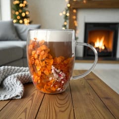 Szklanka termiczna z kwiatami w środku, gipsówka, hortensje, pomarańczowy róż 300 ml 1szt SZK196