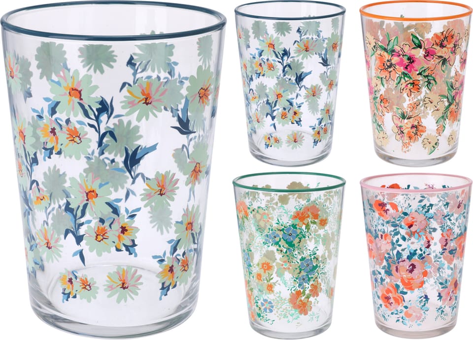 Szklanka z kwiatowym wzorem ze szkła 8,8x12 cm 510 ml