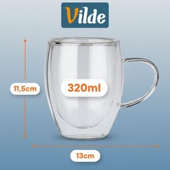 Komplet dwóch szklanek termicznych z podwójną ścianką. Szklanki mają nowoczesny design. Dzięki podwójnej ściance gorące napoje nie będą nas parzyły w ręce i szklanki pozwolą na utrzymanie dłużej ciepłej temperatury, to samo dotyczy chłodnych napojów. Idealne do picia ulubionej kawy, herbaty i innych napojów. Szklanki są świetnym pomysłem na prezent. Oryginalny produkt marki Vilde. Wyprodukowano zgodnie z europejskimi standardami.