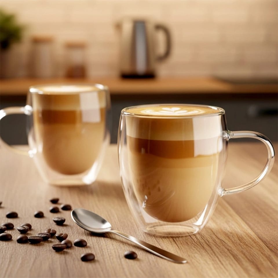 - Szklane z podwójną szklanką - Wykonane z podwójnego szkła borokrzemowego, które utrzymuje temperaturę napoju przez długi czas. Szkło jest przezroczyste. Ciepłe napoje nie schładzają się szybko, a napoje zimne, pozostają dłużej chłodne.