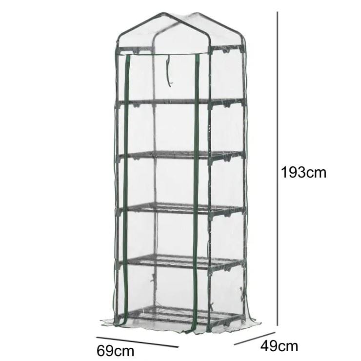 Szklarnia balkonowa / ogrodowa foliowa MINI 193x69x49 cm | 5 poziomówKompaktowa szklarnia foliowa balkonowa to idealne rozwiązanie dla miłośników upraw roślin, ziół i warzyw. Dzięki wymiarom 193 x 69 x 49 cm i aż 5 poziomom półek, pozwala na efektywne wykorzystanie przestrzeni nawet na niewielkim balkonie lub tarasie.Solidny stalowy stelaż zapewnia stabilność i odporność na korozję, a wytrzymała folia PE chroni rośliny przed deszczem, wiatrem i chłodem, jednocześnie przepuszczając odpowiednią ilość światła. Szklarnia utrzymuje ciepło i wilgotność, sprzyjając szybkiemu wzrostowi roślin.Wyposażona jest w przednie drzwi z zamkiem błyskawicznym, które umożliwiają łatwy dostęp do wnętrza i regulację wentylacji. Idealna do stosowania w ogrodzie, na balkonie, tarasie lub działce.Cechy produktu:✅ Wymiary: 193 x 69 x 49 cm✅ 5 poziomów półek – dużo miejsca na rośliny✅ Stelaż stalowy – trwały i odporny na warunki pogodowe✅ Pokrycie z folii PE – ochrona przed deszczem i wiatrem✅ Zamek błyskawiczny – łatwe otwieranie i dobra wentylacja✅ Zastosowanie: balkon, ogród, taras, działkaSzklarnia balkonowa foliowa 193x69x49 cm (5-poziomowa) to praktyczne i estetyczne rozwiązanie, które pozwala cieszyć się świeżymi ziołami i warzywami przez cały sezon. ???