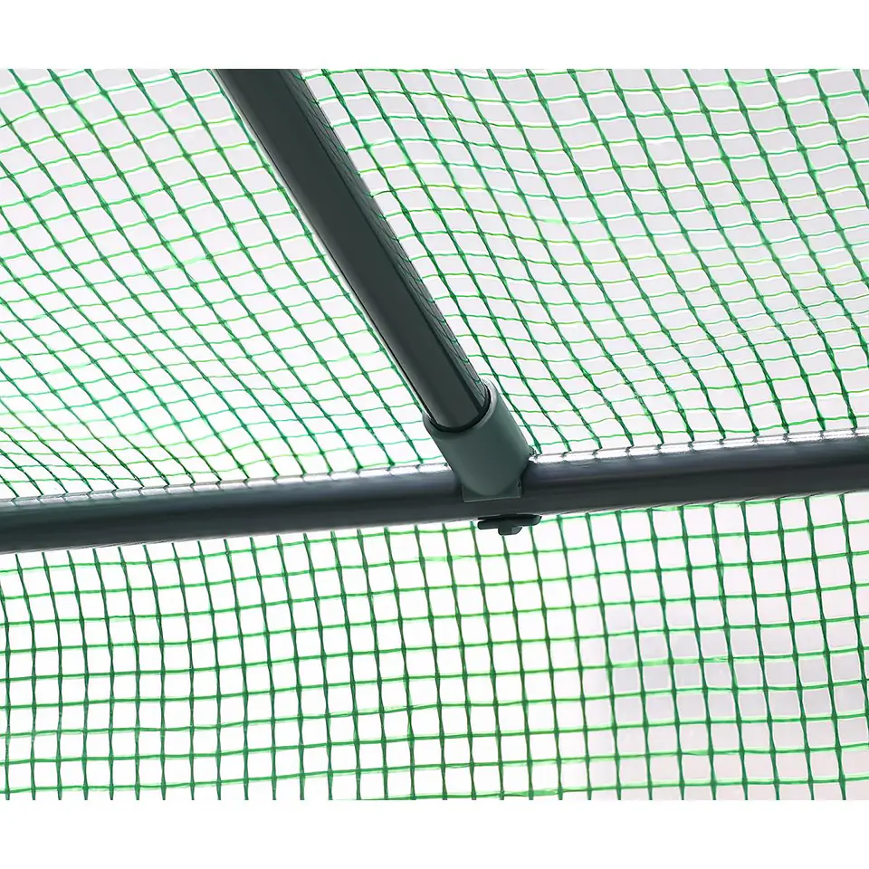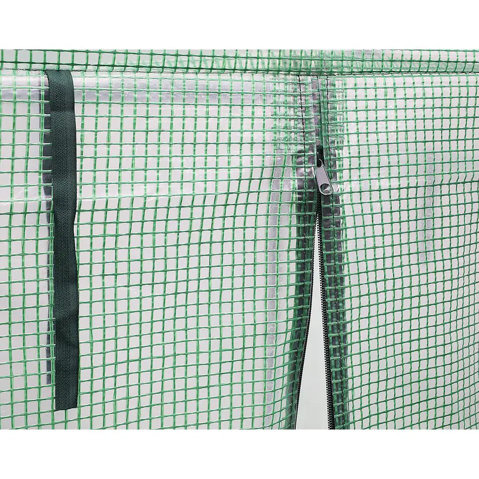 - bardzo łatwa i szybka w montażu bez użycia śrubmocna, warstwowa powłoka PE z wtopioną zieloną siatką PP jest odporna na różne warunki pogodowedwa zamykane okna z moskitierami dostarczają niezbędnej cyrkulacji powietrza oraz regulują temperaturę i wilgotnośćpodwijane zasłony na oknach dają możliwość regulacji ilości światła wpadającego do środkaszerokie na 114 cm wejście i drzwi zasuwane na zamek błyskawiczny pozwolą na szybkie i łatwe wejście do środkaspecjalny 20 cm fartuch ziemny pozwala na lepse przymocowanie go do podłoża za pomocą ziemi lub kamieni