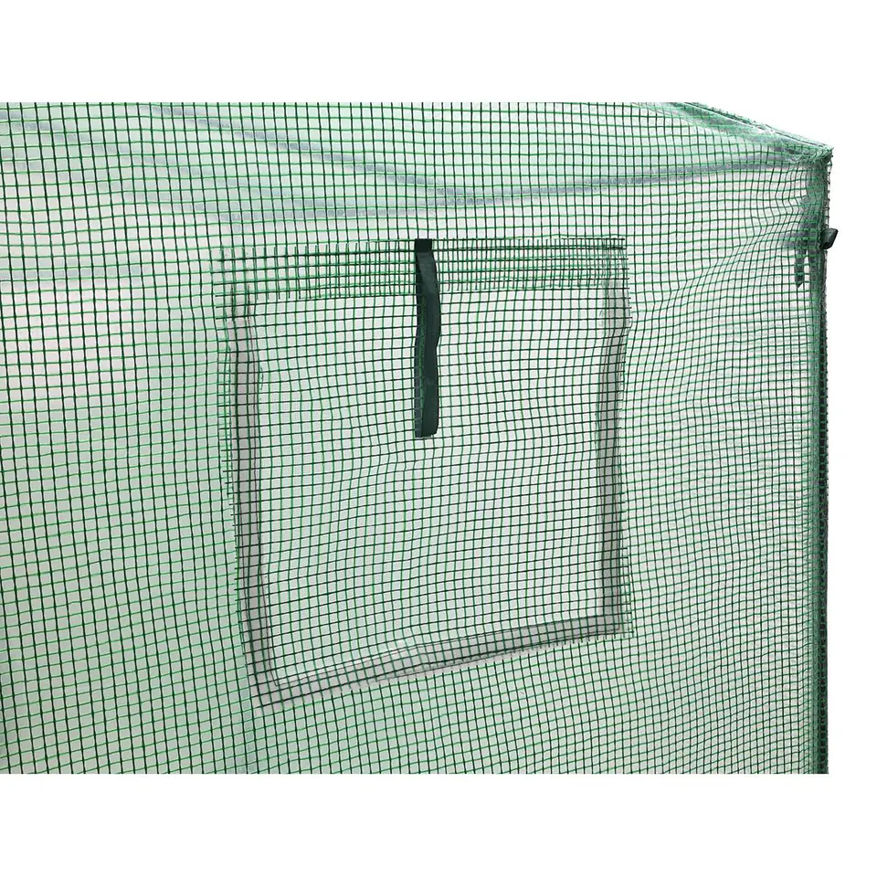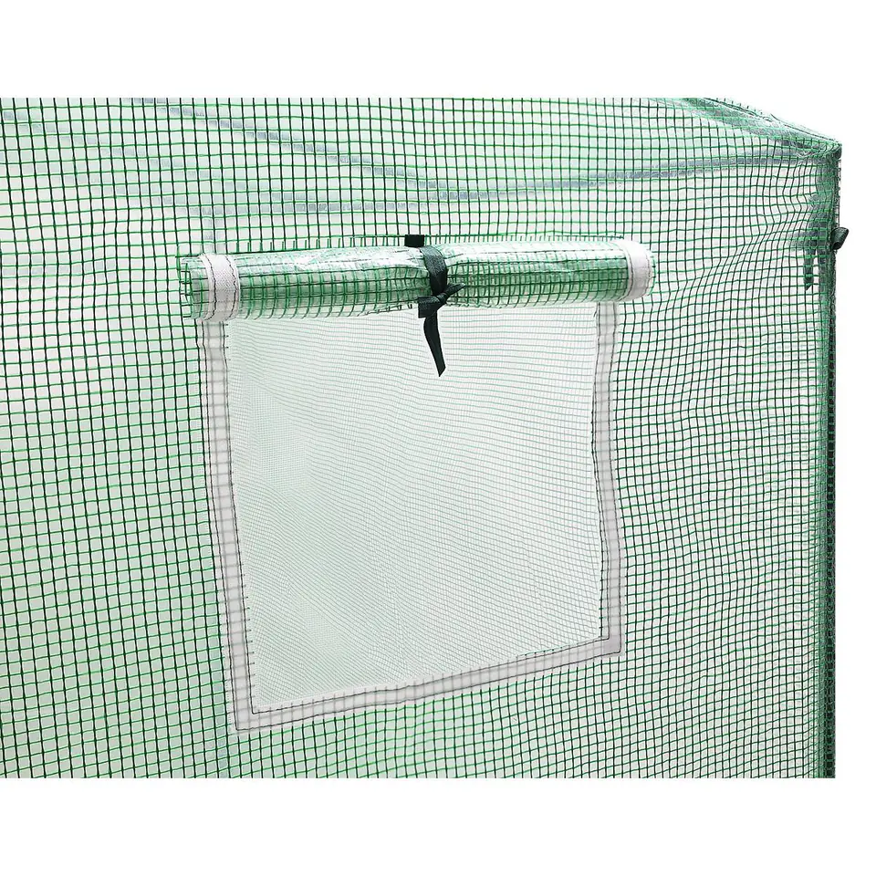 Szklarnia została zaprojektowana w przemyślany sposób. Posiada 2 okna z moskitierami i zasłonkami z folii, które chronią przed nadmiarem wilgoci zapewniając jednocześnie optymalny przepływ powietrza i odpowiedni dostęp do światła. Drzwi zamykane na zamek, pozwolą wychodzić lub wchodzić do środka.