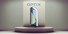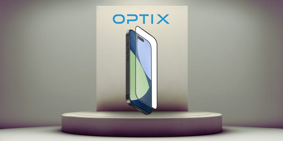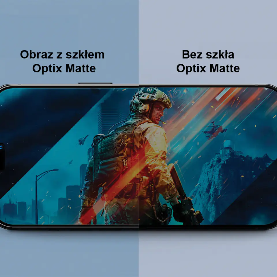 Zawartość zestawu Szkło Optix Matte, ramka montażowa, ściereczka do czyszczenia, naklejka do usuwania kurzu