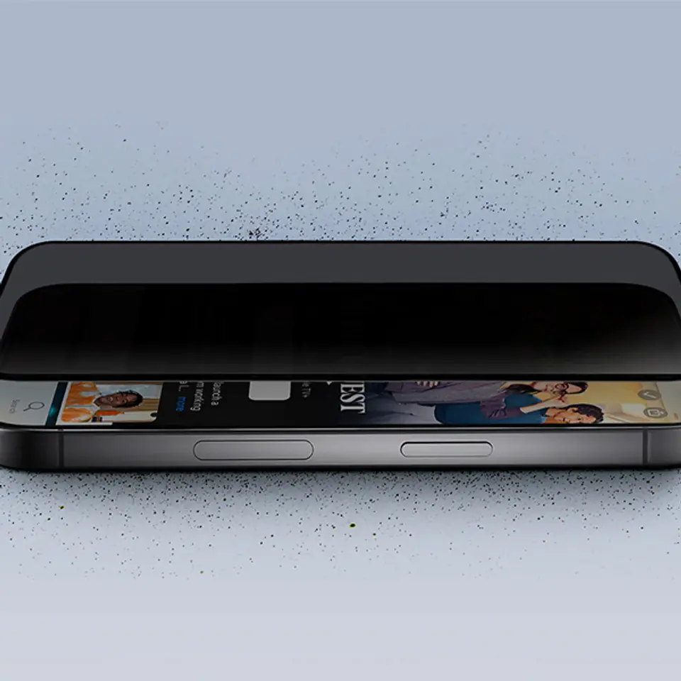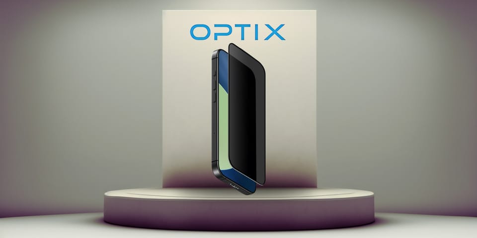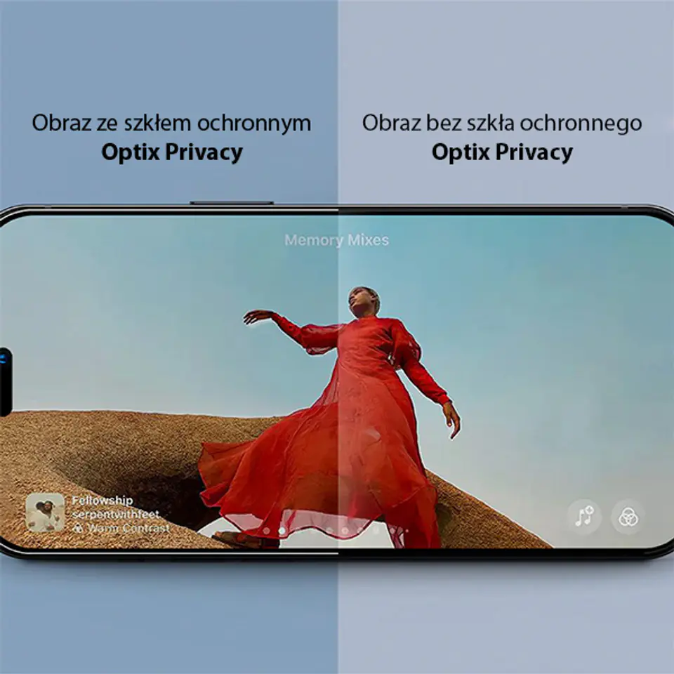 Zawartość zestawu Szkło Optix Privacy, ramka montażowa, ściereczka do czyszczenia, naklejka do usuwania kurzu