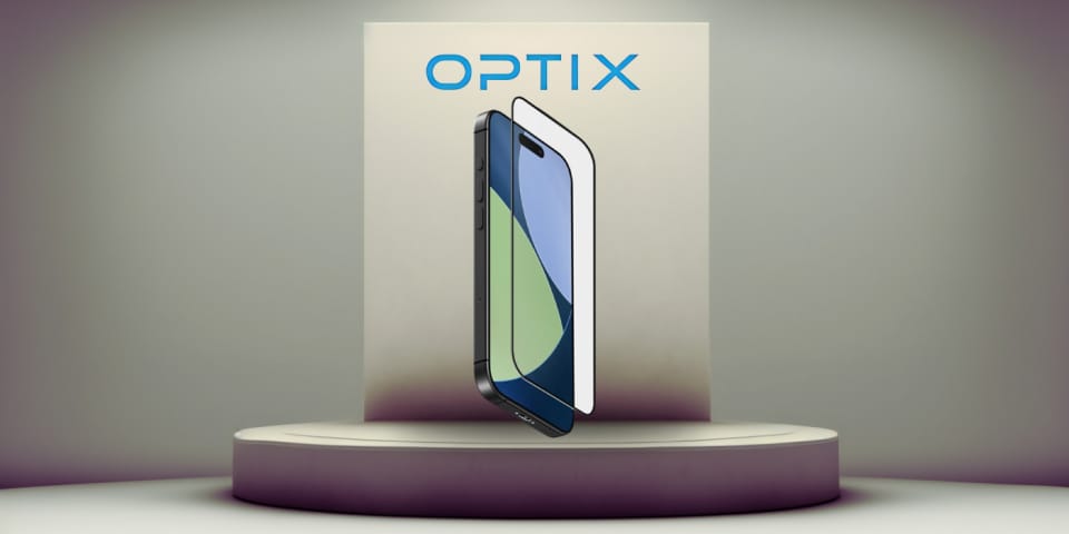 Zawartość zestawu Szkło Optix Vivid, ramka montażowa, ściereczka do czyszczenia, naklejka do usuwania kurzu