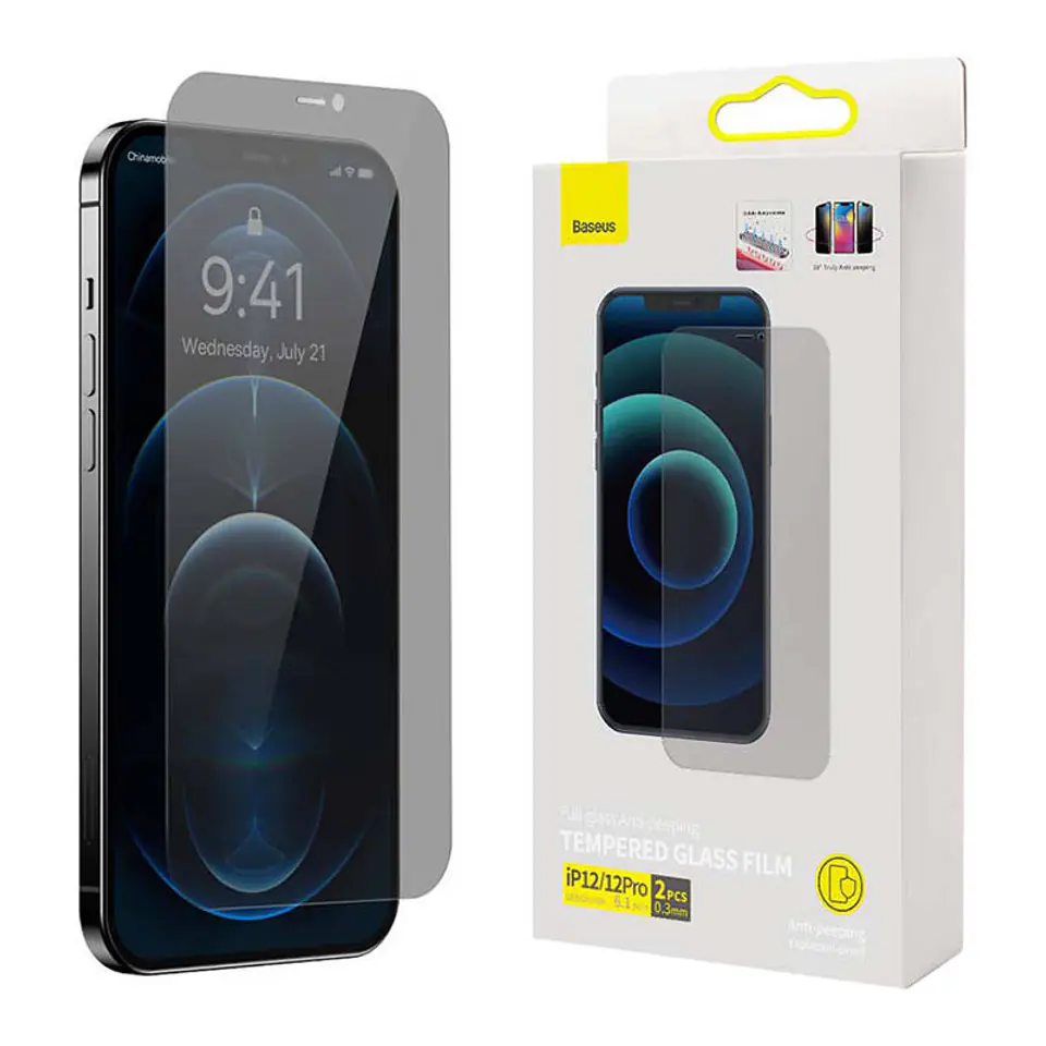 Szkło hartowane 0,3 mm Baseus do iPhone’a 12 / 12 Pro (2 szt.)
