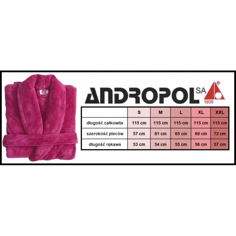 W roku 2006 „Andropol” S.A. obchodził 100 lat istnienia! "Andropol" S.A. jest firmą założoną w 1906 roku przez spółkę "Braci Czeczowiczka" jako "Pierwsza Galicyjska Tkalnia Mechaniczna". W 1992 roku fabryka została przekształcona w spółkę akcyjną i przeznaczona do prywatyzacji przez NFI.„Andropol” S.A. to nie tylko stuletnia tradycja, to najwyższa kultura techniczno-technologiczna w polskim przemyśle włókienniczym. W skład „Andropol” S.A. wchodzą fabryki produkcyjne w Andrychowie i Białymstoku. Fabryki te przez całą swoją historię należały nie tylko do największych zakładów przemysłu włókienniczego w Polsce, ale co istotniejsze do najbardziej renomowanych.Produkty fabryki uchodziły i uchodzą za najlepsze w kraju w swojej klasie, są też cenione za granicą. NAJWYŻSZEJ JAKOŚCIGRUBY SZLAFROK WELLSOFTRENOMOWANEJ FIRMY ANDROPOLNA TEJ AUKCJI DOSTĘPNY JEST:KOLOR: 06. PUDROWY RÓŻROZMIAR: XLSzukasz modnego, stylowego, a przede wszystkim przytulnego i wygodnego szlafroka Przygotowaliśmy dla was wyjątkowy model z bardzo ciepłego materiału.W szlafroku czujemy się swobodnie i ciepło w zimie, ale i lekko i przytulnie w ciepłe letnie dni. Szlafrok jest wykonany w lubianym i popularnym kroju co daje pewność, że będzie świetnie spełniał swoją funkcję . Klasyka w najlepszym i najmodniejszym wydaniu.Szlafrok wciąż pozostaje niedocenianym elementem garderoby. A dzięki niemu można dodatkowo osuszyć ciało po kąpieli albo brylować po domu w wygodnej i praktycznej kreacji.Szlafrok jest wygodnym, lekkim elementem garderoby, który na co dzień pozwala czuć się zarówno szykownie, jak i komfortowo.Można mówić o dwojakim zastosowaniu. Pierwsze dotyczy chwil po kąpieli. Szlafrok damski przyjemnie otula ciało, a do tego pozwala je dodatkowo osuszyć i wchłania wilgoć, z którą nie poradził sobie ręcznik kąpielowy.Warto pamiętać, że szlafrok stanowi również jeden z elementów wystroju wnętrza – szczególnie jeśli wisi w łazience czy w sypialni.Dlatego kolor czy design powinien nawiązywać do aranżacji, tak by uniknąć stylistycznych zgrzytów.Szlafroki Wellsoft, to również idealny prezent dla bliskich. Dostępny w pięknych kolorach. Każdy znajdzie ten ulubiony.Idealny na wiosenno-zimowe wieczory!Koc elektryczny to idealna propozycja dla wszystkich zmarzluchów, którzy mają problemy z rozgrzaniem się w chłodne dni i którzy nie lubią mrozów.Może być również wykorzystywany jako wsparcie w leczeniu dolegliwości reumatycznych i kostnych.Koc przyda się osobom zmęczonym, spiętym i zestresowanym – pozwoli rozgrzać się i rozluźnić po ciężkim dniu pracyGramatura : 280 g/m2Skład: 100 % poliester - WellsoftGruby, ciepły i miękki w dotykuElegancki, Delikatny, Puszysty i lekkiPosiada kieszenieNA POZOSTAŁYCH AUKCJACH DOSTĘPNE SĄ INNE ROZMIARY I KOLORY:KOD PRODUKTU: 50135_6slimtex