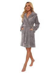 Krótki szlafrok damski wykonany z miękkiego softu. Z kapturem i praktycznymi kieszeniami.
