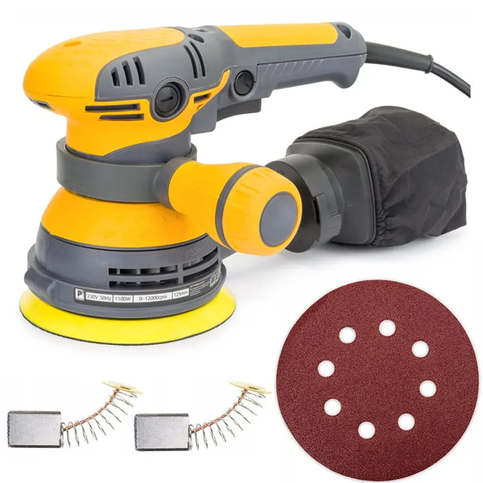 Ważną funkcją szlifierki mimośrodowej Powermat jest system odsysania pyłu. Szlifierka posiada regulacje obrotów, które regulujemy za pomocą pokrętła u góry szlifierki. 6 poziomów prędkości umożliwi precyzyjne dostosowanie pracy do potrzeb użytkownika. Szlifowanie każdego materiału nie stanowi żadnego problemu dzięki silnikowi, którego prędkość obrotowa wynosi od 0 do 12000obr/min.