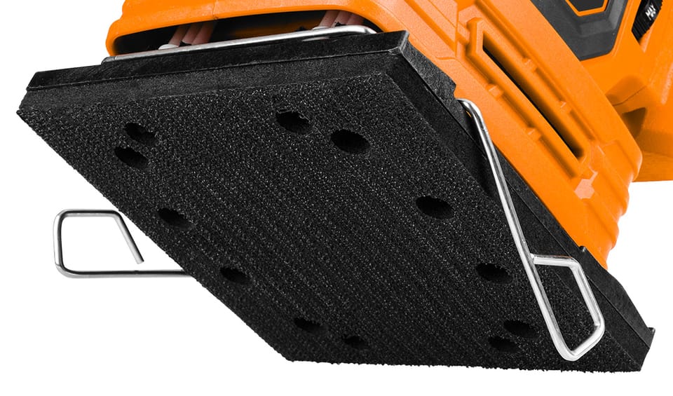 Szlifierka oscylacyjna Energy+ 18V 3w1, bez akumulatora, prędkość obrotowa 7000-12000 min-1, częstotliwość oscylacji 4000-24000 min-1, amplituda oscylacji 1,6mm, wymiary stopy roboczej: kwadrat: 111x111mm, prostokąt: 128x78mm, delta: 147x147x100mm. Wyłącznik przeciwpyłowy, ochrona przed przeciążeniem, ochrona przed niskim napięciem. Akcesoria: pojemnik na kurz 1 szt., stopa kwadratowa 1 szt., stopa prostokątna 1szt., stopa delta 1 szt., 3 sztuki papieru ściernego #120.