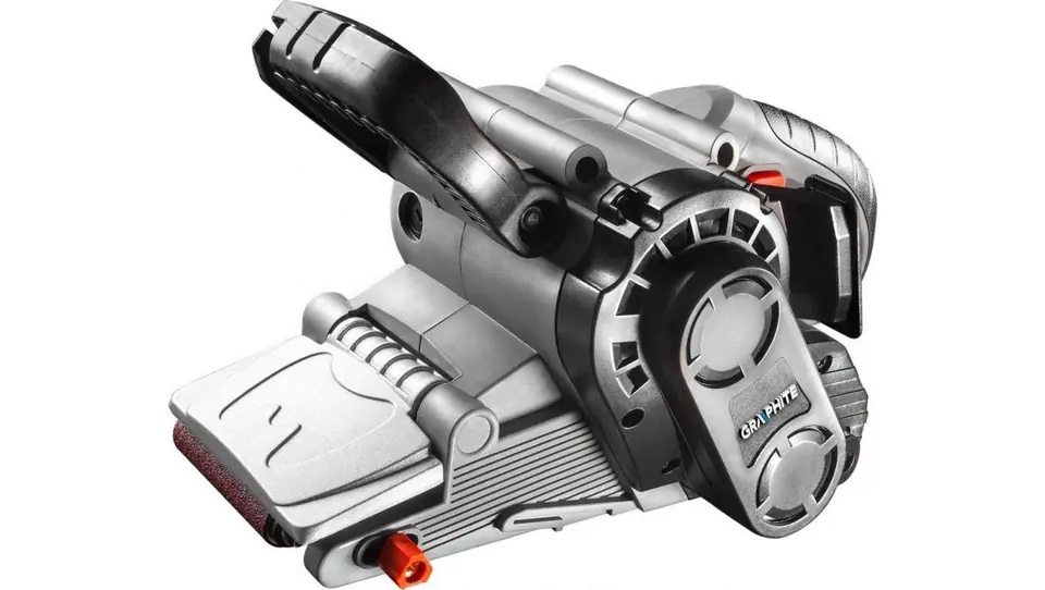 Szlifierka taśmowa 800W, pas bezkońcowy 75 x 457 mm, prędkość przesuwu pasa ściernego 160-260 m/min, czynna powierzchnia szlifowania 75 x 146 mm, średnica rolki prowadzącej 16 mm, (LxH) 300 x 140 mm, masa 3.1 kg, akcesoria: pas ścierny, worek na pył, walizka