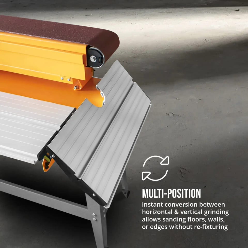 - - Szlifierka pasmowa posiada odchylane ramię (0 - 90deg;) do szlifowania poziomego i pionowego bez konieczności zmiany mocowania.