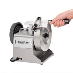 Ostrzarka do noży kuchennych Tormek T-2 Pro zapewnia profesjonalne ostrzenie. Ta koncepcja jest rozwinięciem osełki diamentowej i zapewnia pełną kontrolę w połączeniu z opatentowaną prowadnicą kątową. Nie chodzi tu jednak tylko o szlifowanie krawędzi tnącej, jak ma to miejsce w przypadku osełek ręcznych, prętów gładzących lub konwencjonalnych ostrzarek. Zamiast tego ostrzysz noże i nadajesz im nową, precyzyjną krawędź, która jest równomiernie naostrzona na całym skosie.