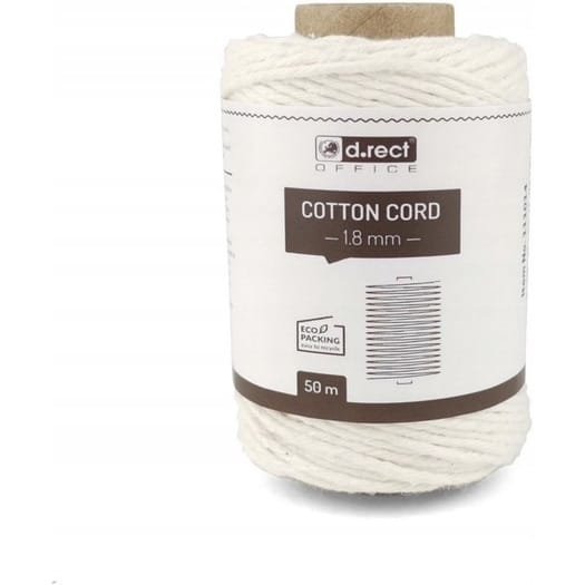 Sznurek bawełniany 1.8mm / 50m biały 111014 d.rect Wykonany z wysokiej jakości 100% naturalnej bawełny sznurek jest mocny i wytrzymały. Szerokie zastosowanie: jest idealnym wyborem do pakowania prezentów, spinania, ogrodnictwa, dekorowania, wieszania i rzemiosła. Rozwiń swoją kreatywność, możesz tworzyć własne draperie, wieszaki na rośliny, torby, gobeliny i poduszki. Może być również używany do tworzenia prezentów urodzinowych i świątecznych, ręcznie robionych kartek z życzeniami, ozdób wazonów, wiązania roślin w ogrodzie i wielu innych celów. Sznurek owinięty jest wokół szpulki. Miękki i mocny sznurek zapewnia najwyższy komfort użytkowania.