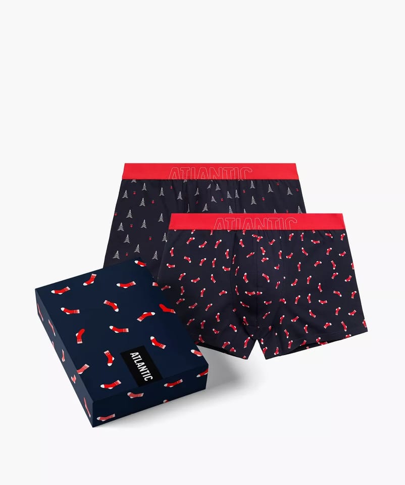 Szorty ze standardowej długości nogawkami, niską talią zaznaczoną miękką i nieuciskającą ciała gumą z subtelnym logo. Wykonane z przyjemnej w dotyku bawełny. Idealne na prezent. W opakowaniu 2 szt. Skład: 95% bawełna, 5 % elastan.