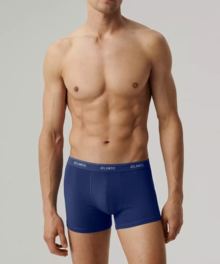 Szorty męskie o sportowym charakterze mają niski stan i uniwersalnej długości nogawki. W talii zaznaczone są miękką i nieuciskającą ciała gumą ozdobioną logo ATLANTIC. Pakowane po dwie sztuki. Skład: 95% bawełna, 5% elastan.