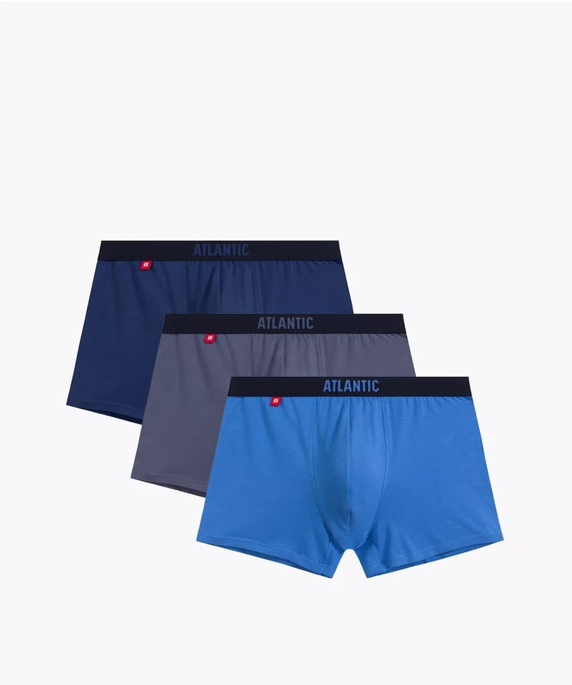 Sportowe szorty odznaczają się niską talią, wykończoną miękką i nieuciskającą ciała gumą ozdobioną logo Atlantic oraz uniwersalnej długości nogawkami. Idealne dopasowanie, przyjemna w dotyku dzianina. Pakowane po 3 szt. Skład: 95% bawełna, 5% elastan.