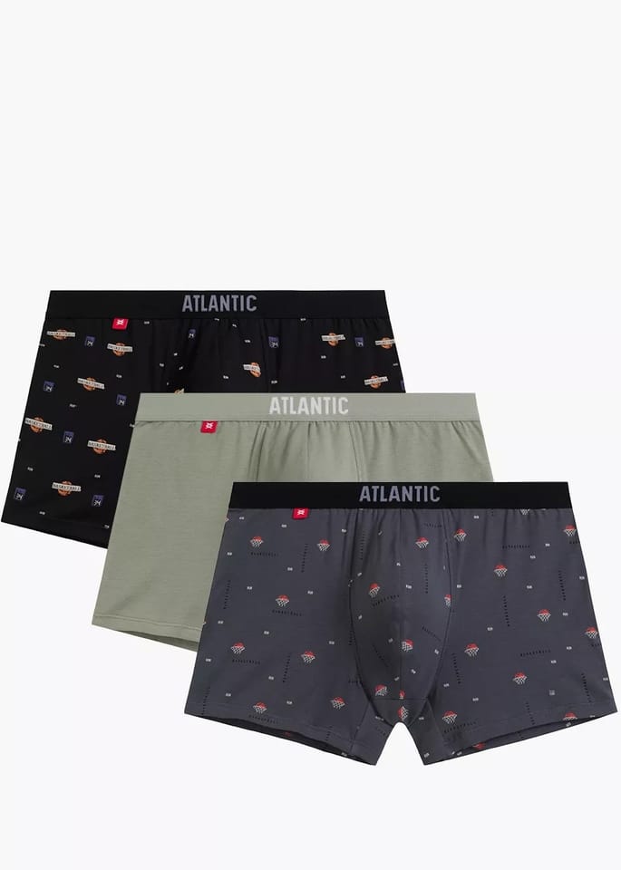 Sportowe szorty odznaczają się niską talią, wykończoną miękką i nieuciskającą ciała gumą ozdobioną logo Atlantic oraz uniwersalnej długości nogawkami. Koszykarski nadruk, przyjemna w dotyku dzianina. Pakowane po 3 szt. Skład: 95% bawełna, 5% elastan.