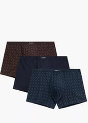 Szorty w geometryczny wzór o klasycznym kroju odznaczają się średniej wysokości stanem oraz standardowej długości nogawkami. Miękka guma wewnętrzna w pasie gwarantuje idealne trzymanie. Pakowane po 3 szt. Skład: 95% bawełna, 5% elastan.