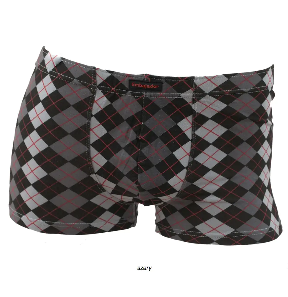 Komfortowe szorty męskie. Między nogawkami wszyty klin zapobiegający otarciom, podwyższający komfort noszenia. Nieuciskająca guma.