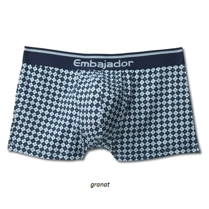 Wzorzyste szorty męskie z anatomicznie wyprofilowanym frontem, wykonane z miękkiej bawełny z dodatkiem elastanu (5%). W pasie elastyczna, nieuciskająca guma zewnętrzna.