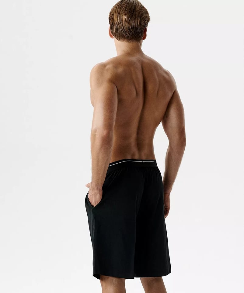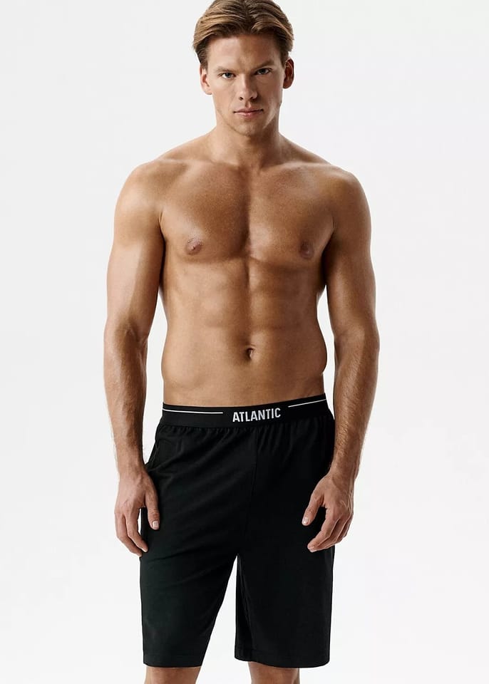 Spodenki, które możesz nosić w wersji na dzień i na noc z miękkiej, przyjemnej w dotyku dzianiny. Nogawki długości nad kolano oraz dwie kieszenie po bokach, w pasie płaska, delikatna gumka z napisem Atlantic. Skład: 95% bawełna, 5 elastan.