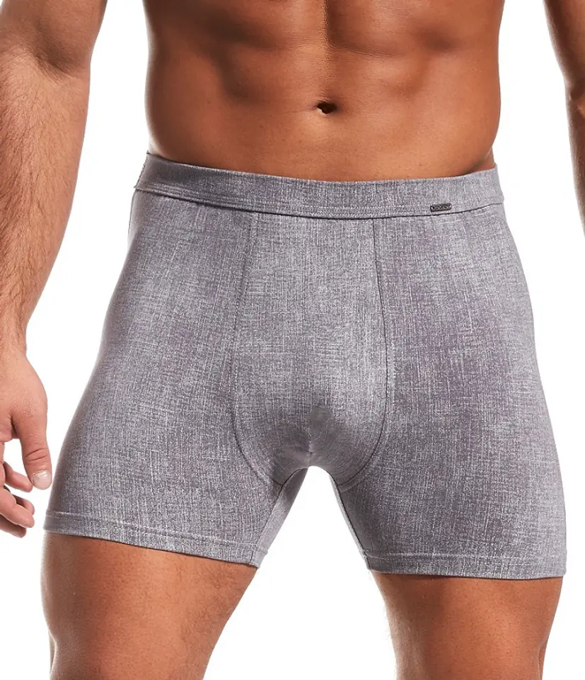 Szorty męskie, wyprodukowane z najwyższej jakości bawełnianej dzianiny elastycznej. Płasko łączona guma, przestrzenny klin, płaskie łączenie klinów, bezuciskowe wykończenie nogawek to największe atuty tego modelu. Skład: 95% bawełna, 5% elastan.