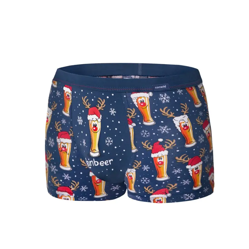 Szorty męskie wykonane z wysokiej jakości bawełny ozdobione świątecznym nadrukiem. Pakowane w ozdobne pudełko, idealne na prezent. Skład: 95% bawełna, 5% elastan.