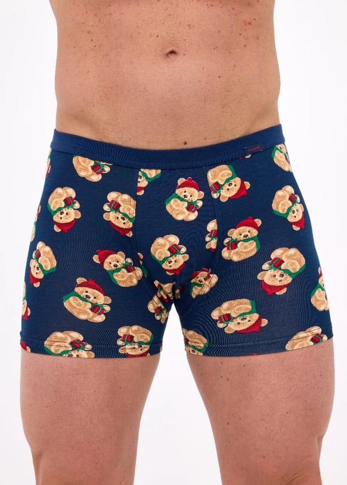 Szorty męskie wykonane z wysokiej jakości bawełny ozdobione świątecznym nadrukiem. Pakowane w ozdobne pudełko, idealne na prezent. Skład: 95% bawełna, 5% elastan.