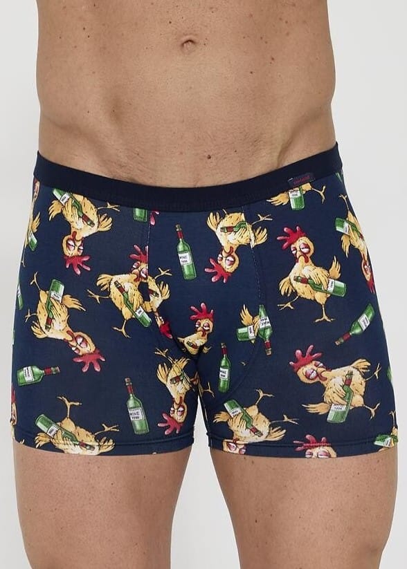 Bawełniane szorty męskie ozdobione kolorowym, zabawnym wzorem.Dopasowane, płaskie szwy, wygodna guma w pasie obszyta bawełną, bezuciskowe wykończenie nogawek. Skład: 95% bawełna, 5% elastan.