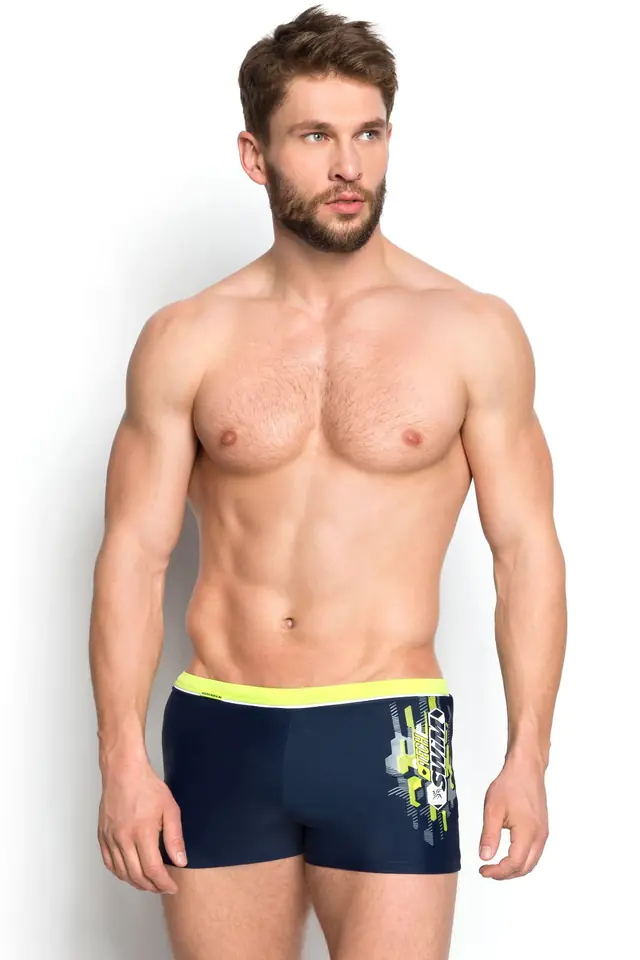 Męskie szorty kąpielowe, wykonane z najwyższej jakości materiału. Zastosowany w pasie sznurek pozwala regulować obwód. Z boku nowoczesny nadruk oraz subtelne logo. Dla lepszego komfortu podszewka z siateczki. Materiał: 80% poliamid, 20% elastan.