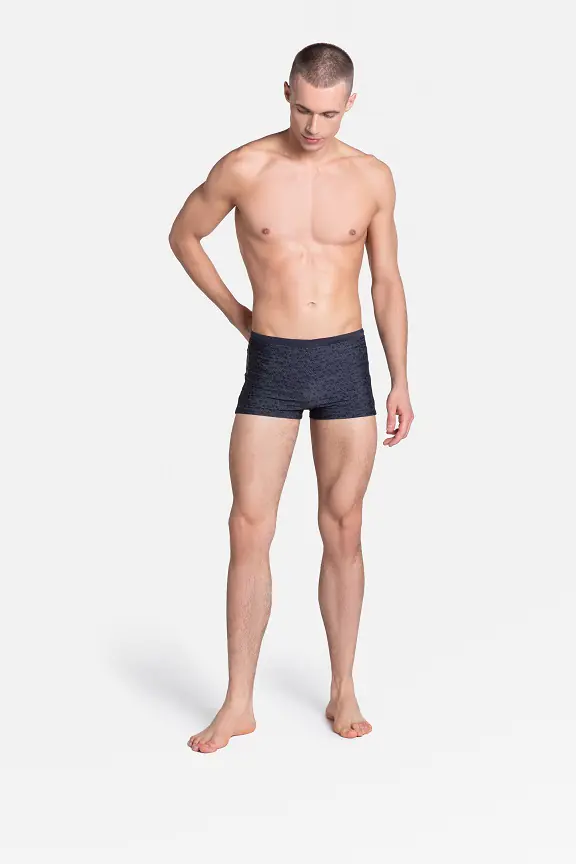 Szorty kąpielowe wykonane z wysokiej jakości mikrofibry. Szorty od wewnętrznej strony posiadają siateczkowe slipy, które pozwalają zachować komfort podczas aktywnego dnia oraz sznureczek do regulacji obwodu. Skład: 80% poliamid, 20% elastan.