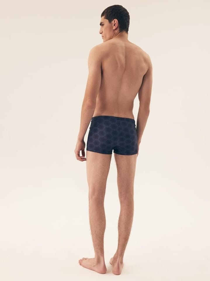 Stylowe męskie bokserki kąpielowe wykonane z wysokiej jakości wzorzystej mikrofibry. Posiadają elastyczny pas ze sznurkiem do regulacji, zapewniając idealne dopasowanie. Skład:80% poliamid, 20% elastan.