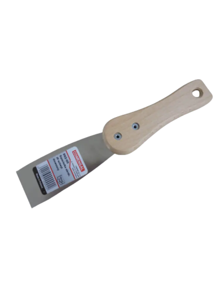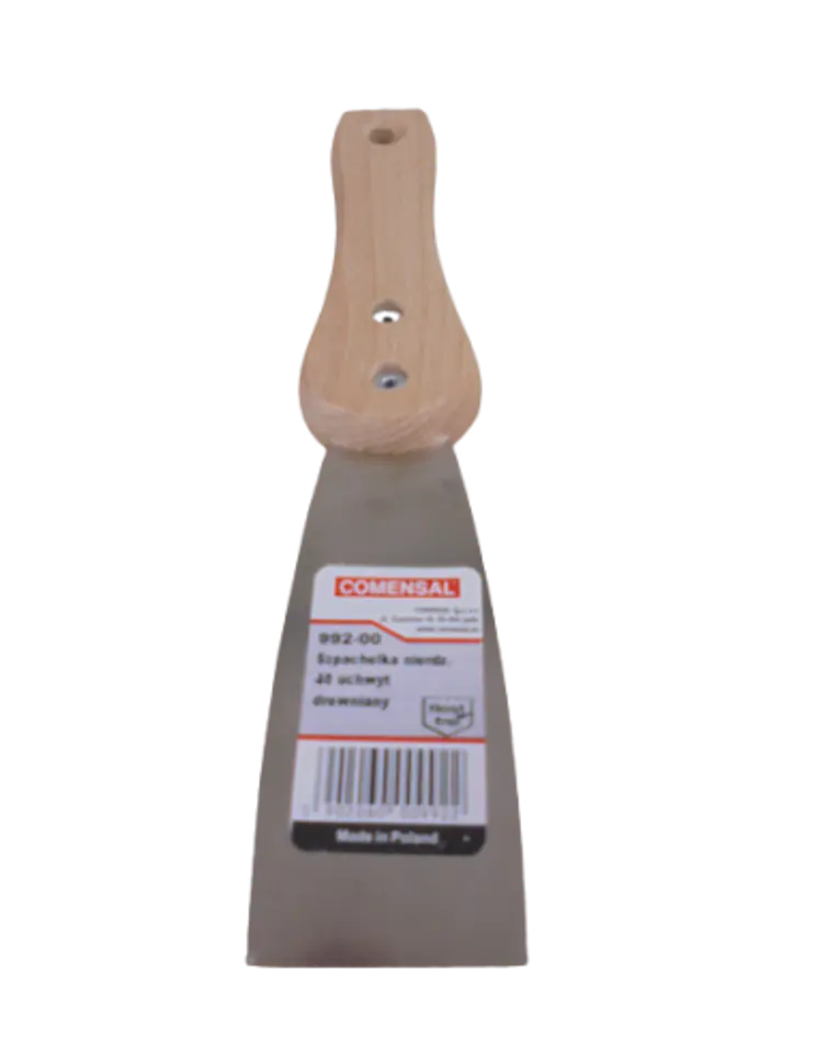 Uniwersalna szpachelka z drewnianym uchwytem wykonana ze stali nierdzewnej. Niezbędna zarówno w budownictwie jak i każdym gospodarstwie domowym.