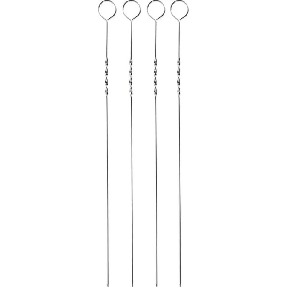 - wkonane ze stali z chromowanym wykończeniemw zestawie 4 sztuki o długości 37,5cmułatwia smażenie pożywienia z wielu strondługie rączki zabezpieczą przed poparzeniemostra końcówka ułatwi nabić potrawę na szpikulecłatwe w utrzymaniu czystości