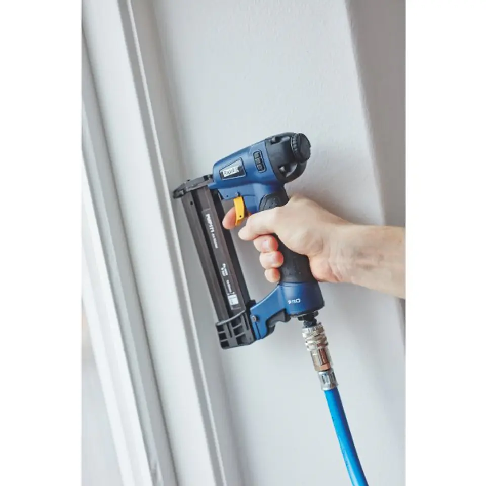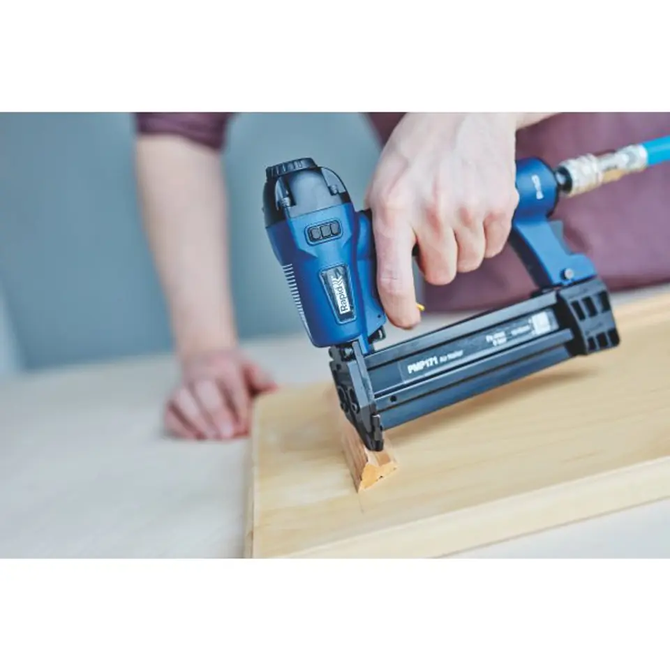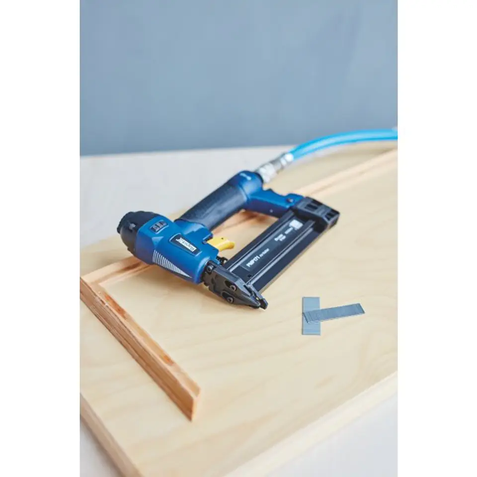 Do precyzyjnych prac stolarskich wymagających prawie niewidocznych rezultatów, PMP171 to idealna mikro-sztyfciarka pneumatyczna dla profesjonalitów i wymagających majsterkowiczów. Wbija mokro-sztyfty 23 Ga do 35 mm, dzięki czemu idealnie nadaje się do mocowania cienkich listew, ościeżnic drzwiowych i okiennych, listew ozdobnych, listew dolnych i lekkich mebli. Wyposażona w system szybkiego ładowania z boku, uruchamianie stykowe dla bezpiecznego i precyzyjnego mocowania oraz regulowany wylot powietrza w zakresie 360°, który utrzymuje kurz z dala od powierzchni roboczych.