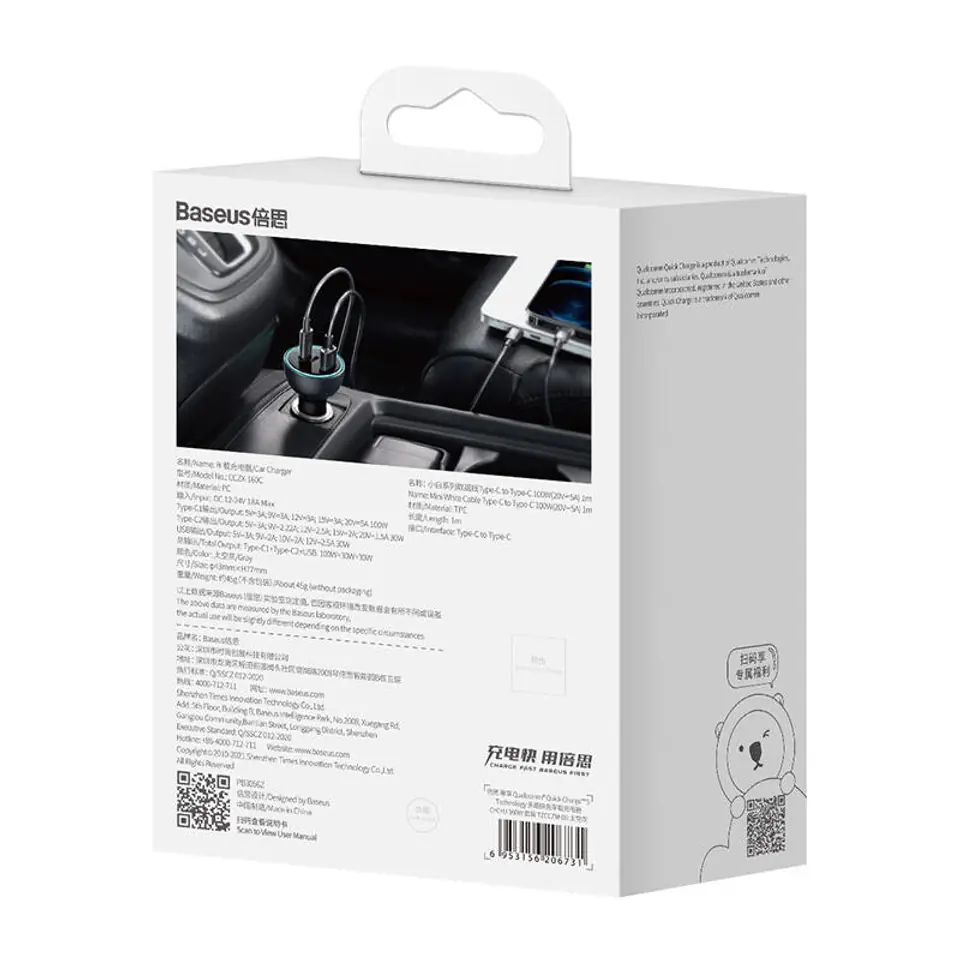 Kod produktu: 1020134Podczas jazdy samochodem korzystasz z nawigacji i telefonu, więc potrzebujesz podłączyć dwa urządzenia z różnymi wejściami? Wówczas może pojawić się problem. Rozwiążesz go dzięki ładowarce samochodowej Baseus. Prosty wygląd i zastosowanie najnowszych technologii w tym akcesorium pozwoli Ci na szybkie i wygodne ładowanie urządzeń podczas jazdy samochodem. Duża moc oraz technologia Quick Charge 5 pozwoli Ci naładować smartfona w błyskawicznym tempie.Najważniejsze cechy- Ta ładowarka samochodowa Baseus wspiera najnowszą technologię Quick Charge 5 oraz szereg innych protokołów jak na przykład: PD, QC 3+, PPS i inne,- Wysoka moc ładowarki Baseus pozwala na ładowanie szerokiego spektrum urządzeń. Dzięki gniazdom USB-C oferującym moc wyjściową aż 100W, możesz efektywnie i szybko naładować nawet laptopa,- System szybkiego odprowadzania ciepła gwarantuje bezpieczeństwo i komfort.Specyfikacja:- Marka: Baseus- Model: CCZX-160C- Materiał: PC- Wejście: DC 12/24 V- Napięcie wyjściowe dla USB: 5V/3A, 9V/2A, 10V/2A, 12V/2.5A 30W- Napięcie wyjściowe dla USB typ C: 5V/3A, 9V/2.22A, 12V/2.5A, 15V/2A, 20V/1.5A 100W- Moc wyjściowa: 100W + 30W + 30W- Waga: około 45 gZestaw zawiera:- 1x Szybka ładowarka samochodowa USB USB-C 160W PPS Quick Charge 5 PD