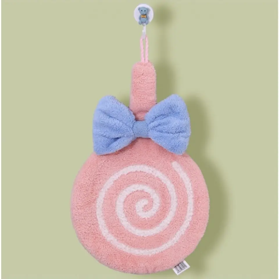 Szybkoschnący ręcznik do rąk na sznurku - wzór lizak z kokardąUroczy i świetnie wchłaniający wodę ręcznik do rąkPochłania 20% więcej wody, niż zwykły ręcznik.Posiada praktyczną zawieszkę, czas wchłaniania: 5 - 10 sekund Wymiary:30 cm x 20 cm Materiał: Mikrofibra