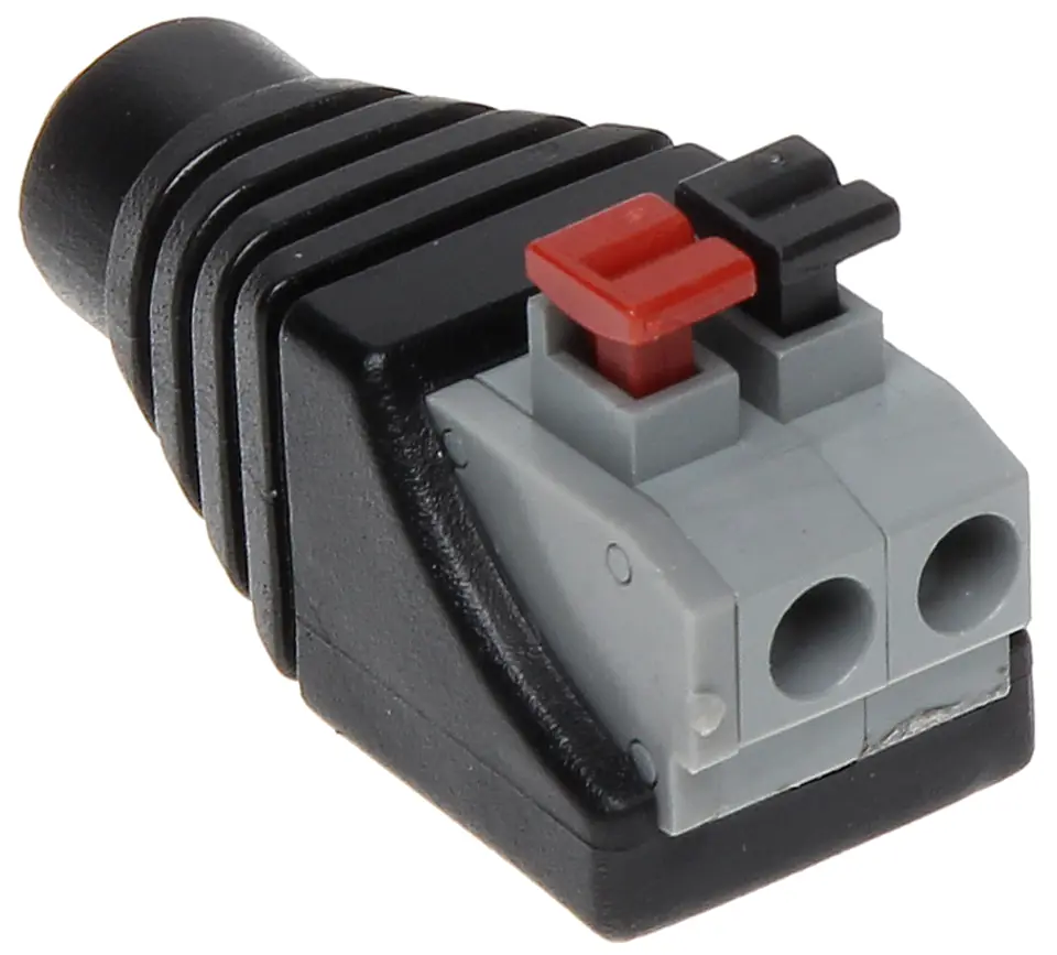 Szybkozłącze na standardowe gniazdo do zasilania kameryAby zamontować G-55H*P10 wystarczy jedynie odizolować przewody i wcisnąć w zaciski spręzynowe