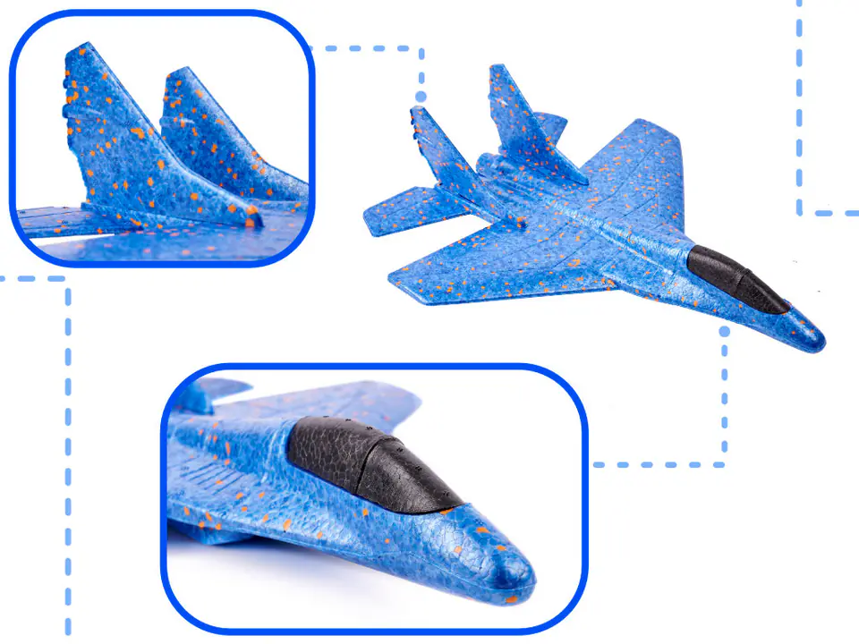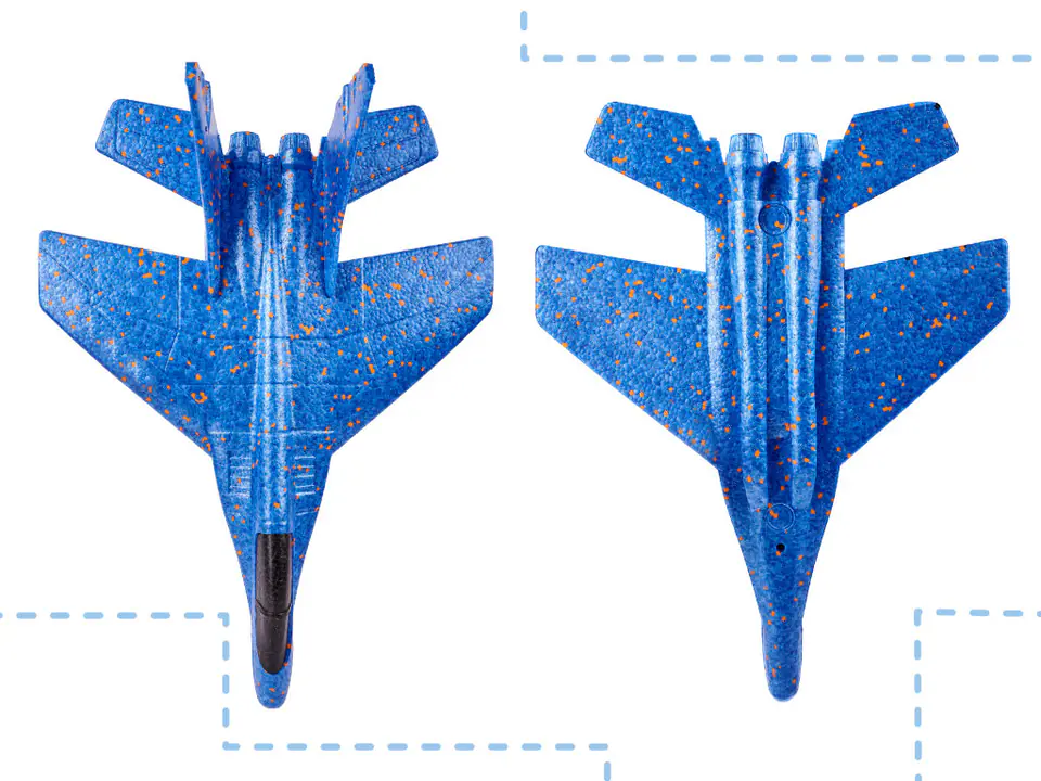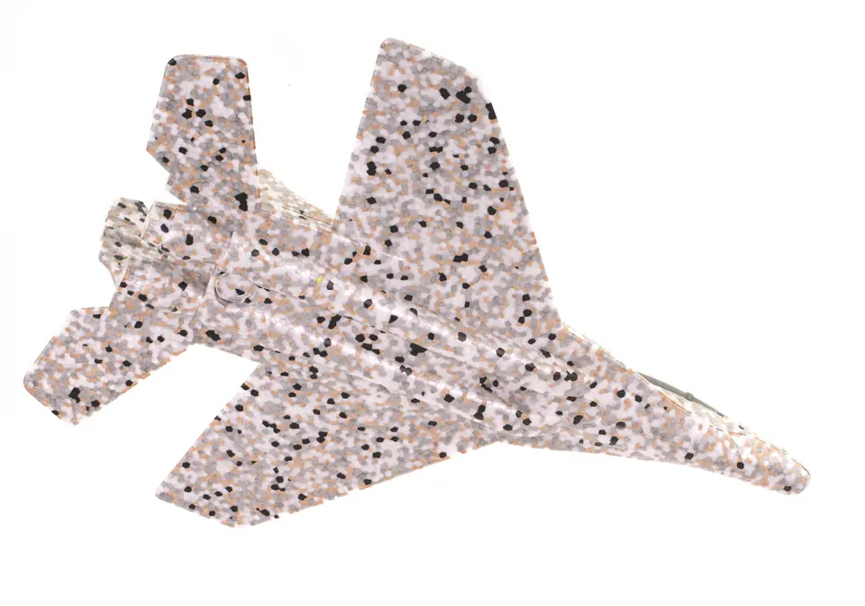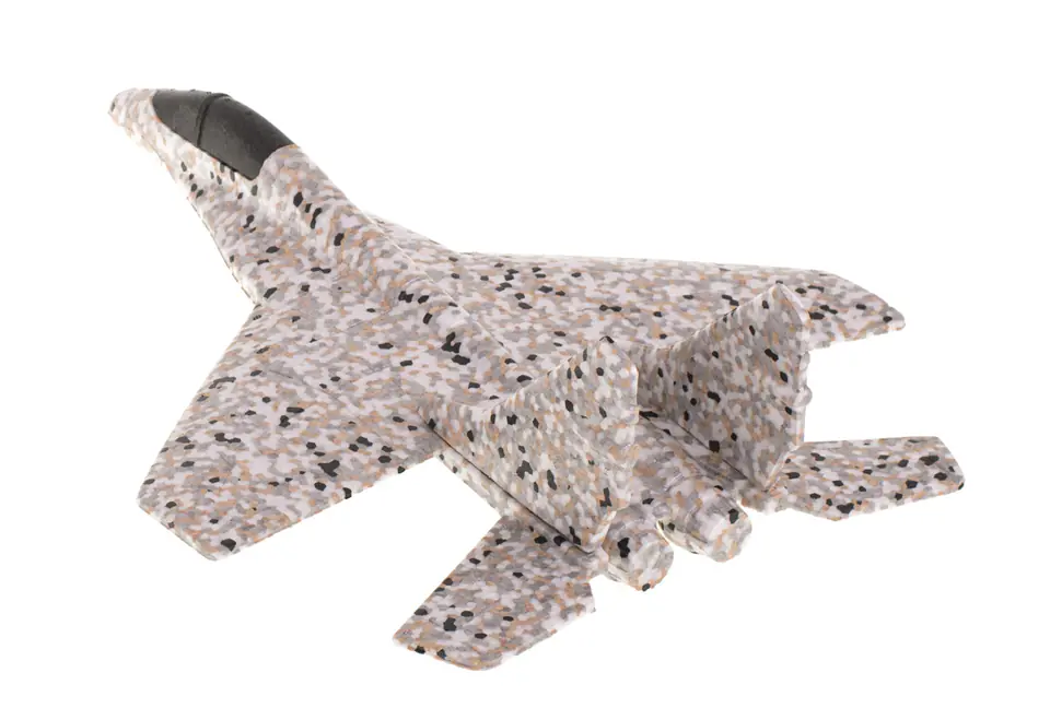 Fantastyczny lekki odrzutowiec wykonany z tworzywa przypominającego styropian.