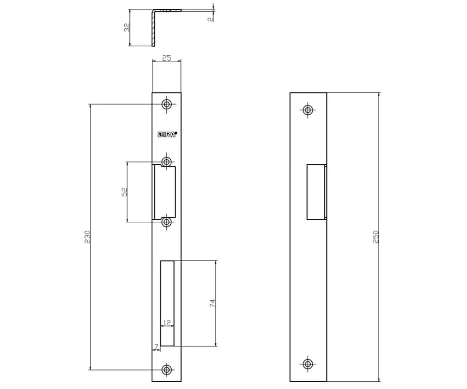 | Wymiary: | 25 x 250 x 32 mmGrubość blachy 2 mm |