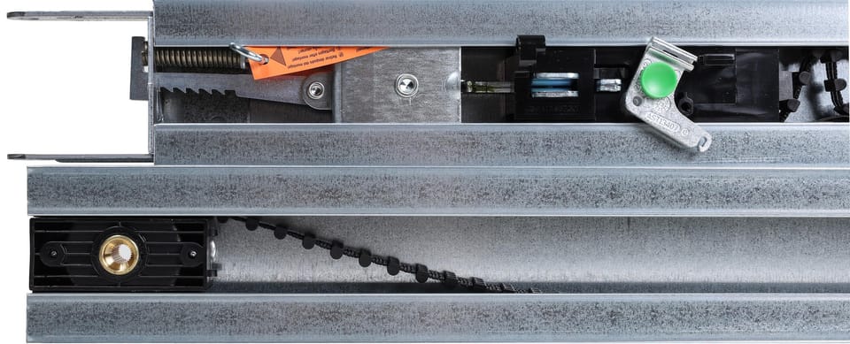 Krótka dwuczęściowa szyna do napędów Promatic i Supramatic E i P oraz Ecomatic. Nadaje się do obsługi bram: