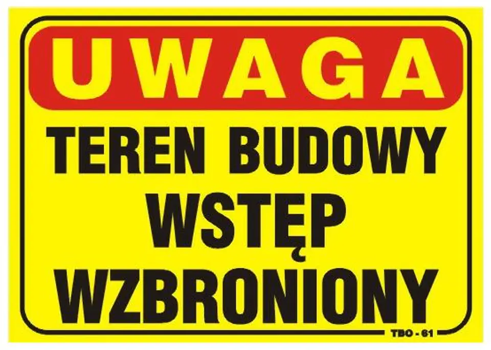 Tablice wykonane metodą sitodruku na płycie twardej PCV grubości 1 - 0,8 mm w kolorze żółtym.