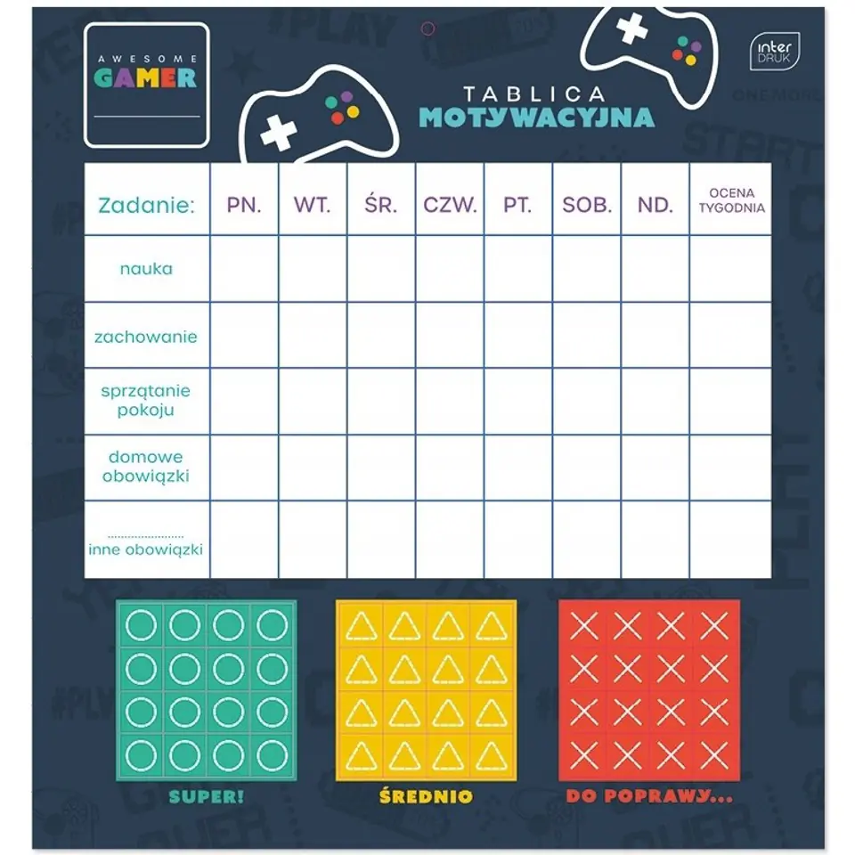 Tablica motywująca z naklejkami GAMER 320x340mm INTERDRUK
