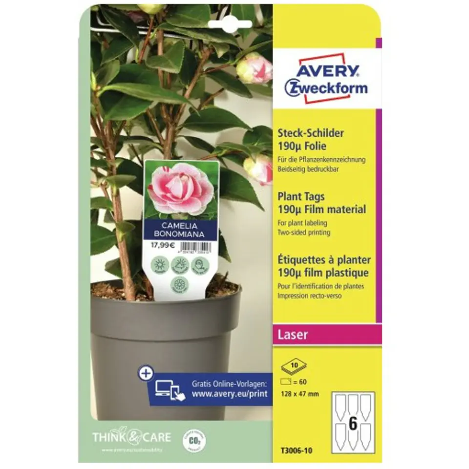 Tabliczki foliowe do oznaczania roślin mozna dwustronnie zadrukowac, dzieki czemu idealnie nadają sie do zamieszczania dodatkowych informacji na odwrocie. Latwe i wygodne w uzyciu: po wydrukowaniu arkuszy A4 pojedyncze tabliczki mozna latwo oddzielic od arkusza.