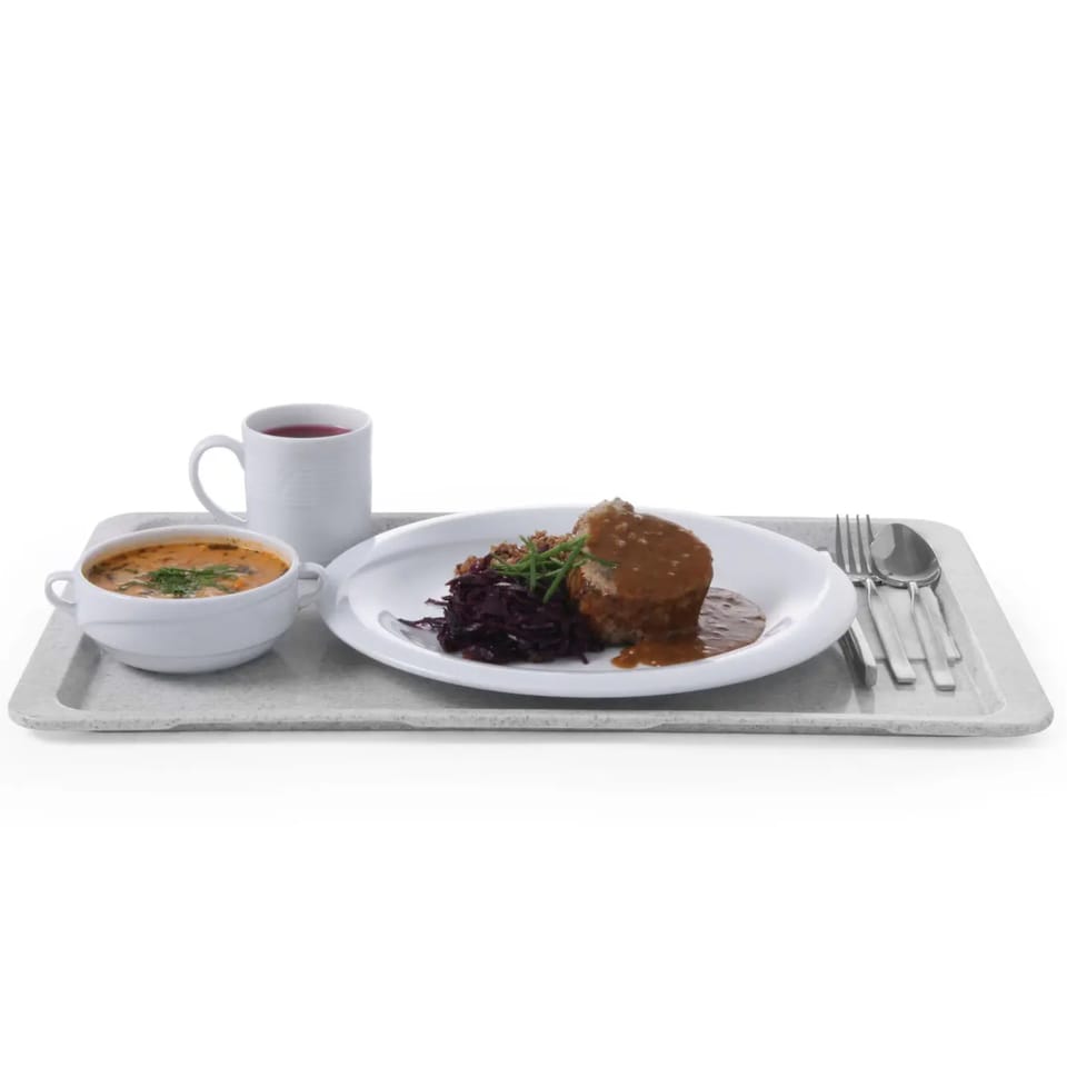 Numer producenta: HENDI 876619Taca poliestrowa marki Hendi to naczynie, które znajdzie zastosowanie w barach mlecznych, budkach z hamburgerami, kebabami oraz w innych lokalach serwujących dania typu Fast Food.Cechy produktu:– Taca poliestrowa,– Prostokątna, gładka,– Twarda wytrzymała idealna do serwowania gorących potraw,– Kolor granit,Parametry:– wymiary w mm: 530x325– GN: 1/1– kształt: prostokątny Zakres dostawy:– Taca poliestrowa HENDI