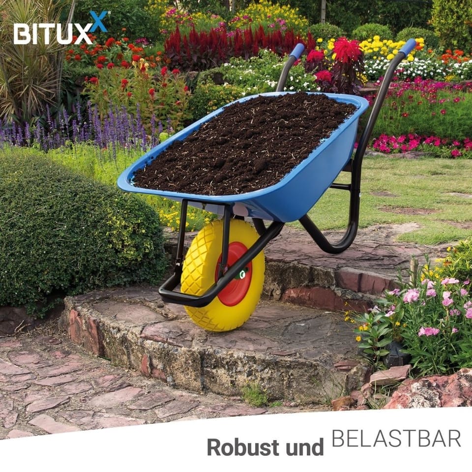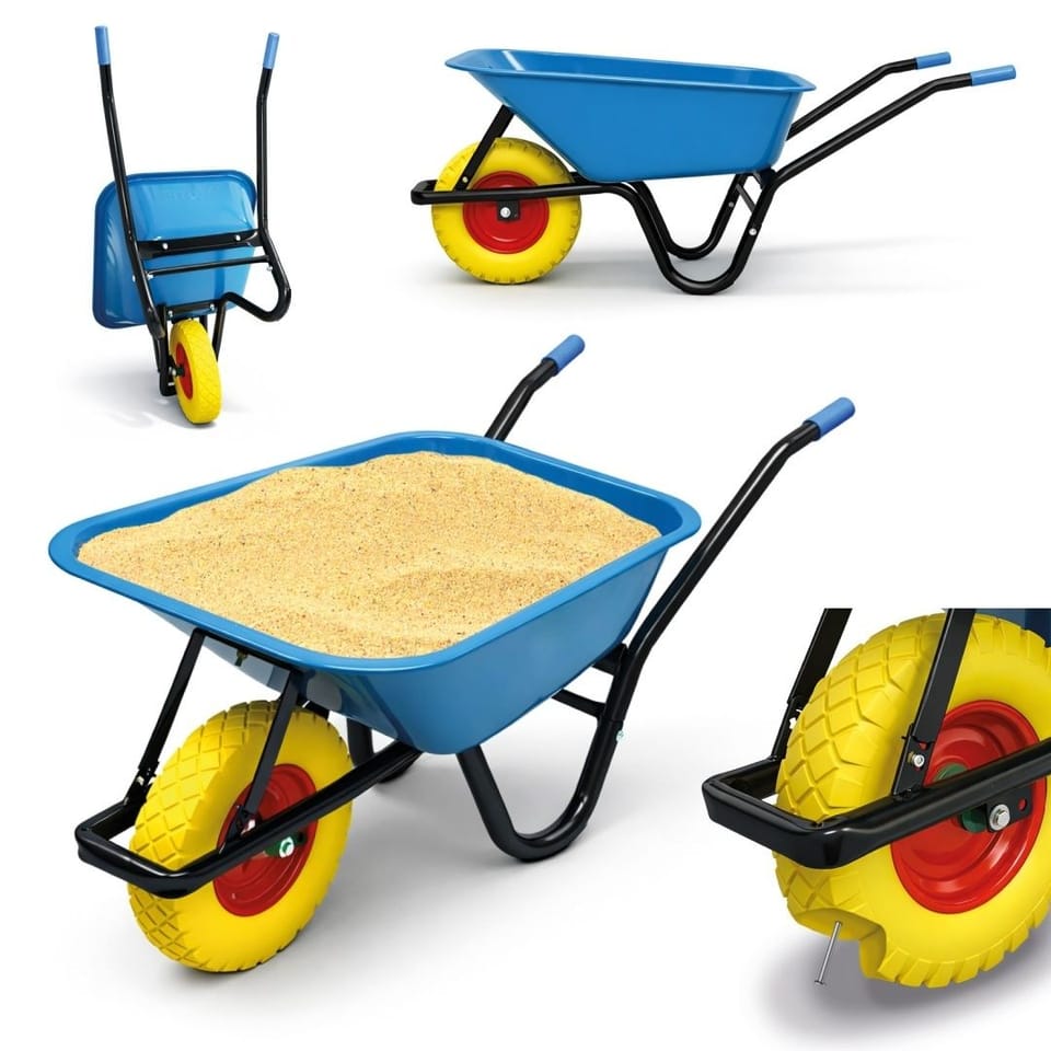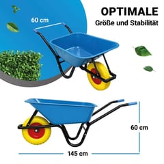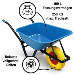 Taczka Ogrodowa Solidna taczka 100L jednokołowa niebieska Mocna 250kg +żółte koło PU